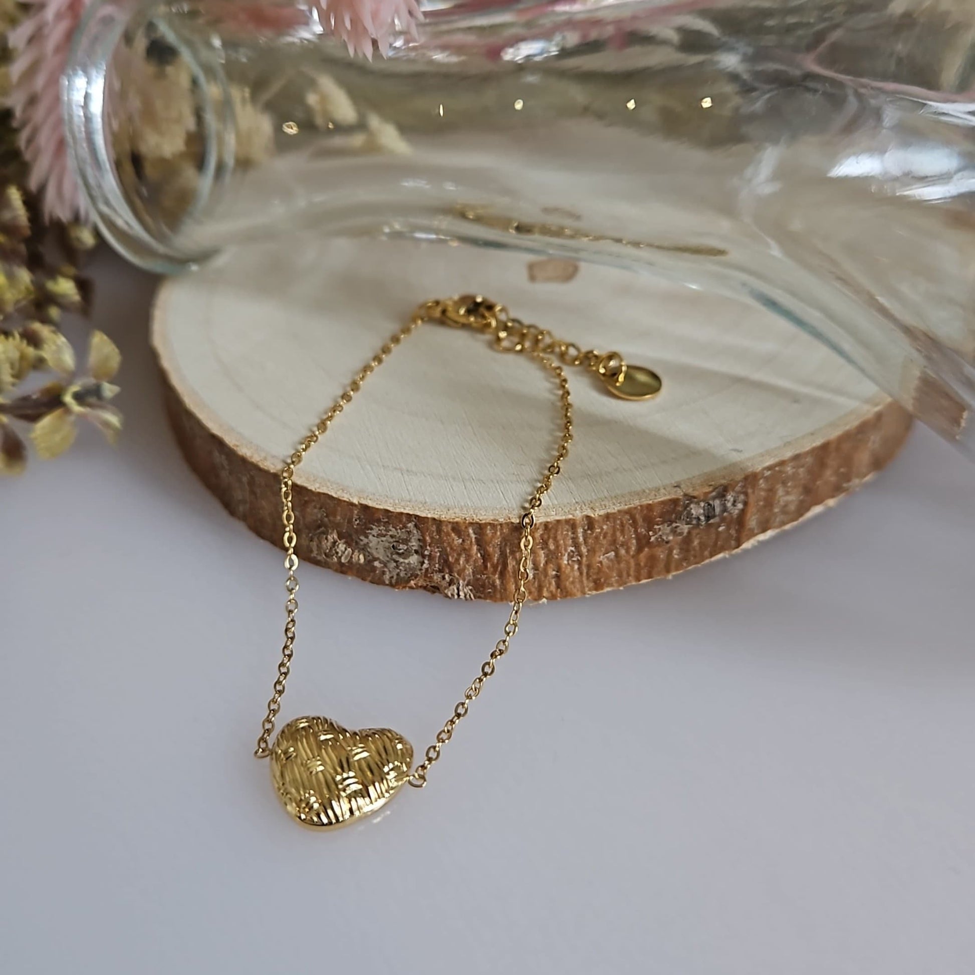 CORDÉLIA - Bracelet Cœur doré en acier inoxydable